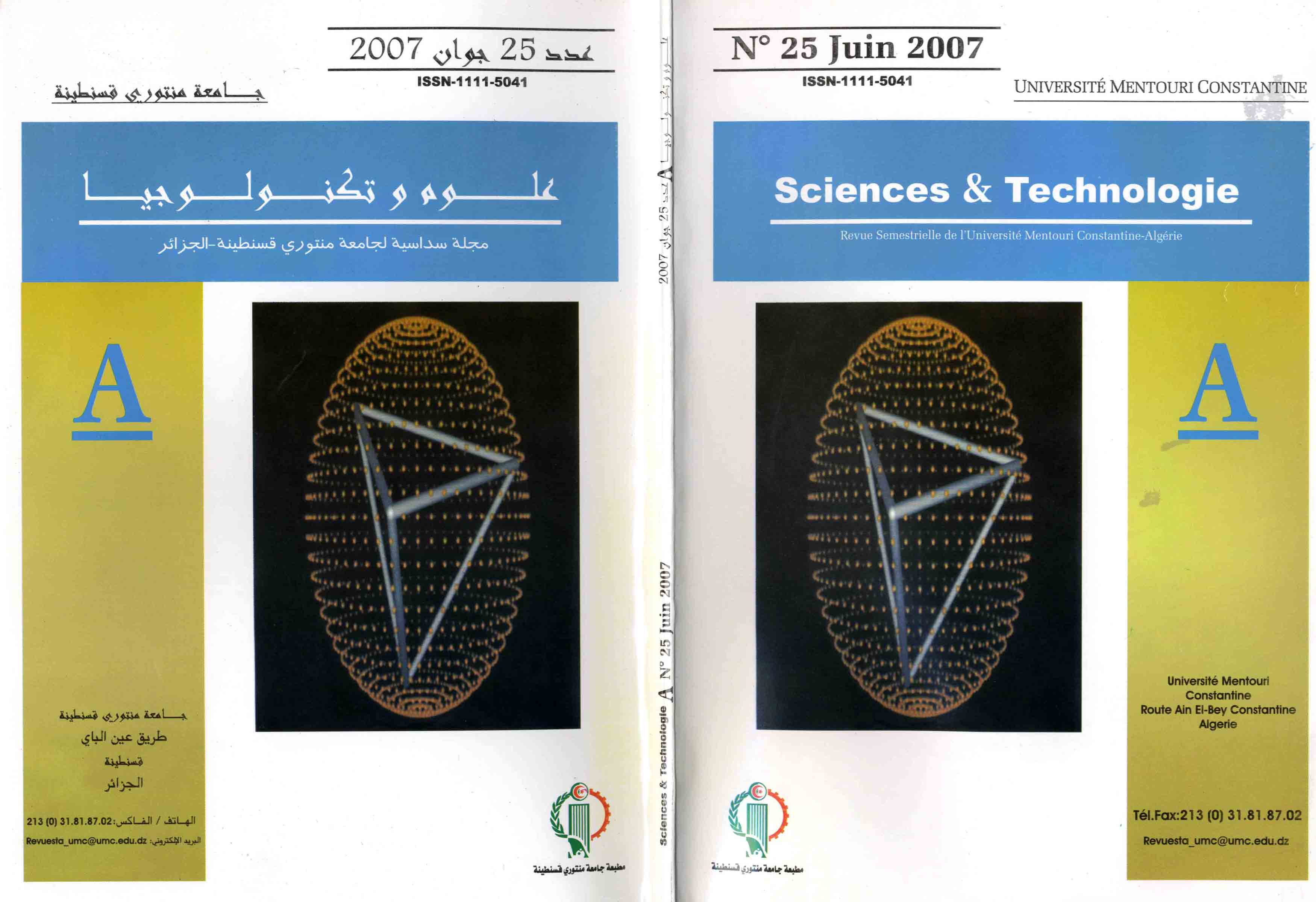 Publication and Scientific Animation Department. Freres Mentouri University Constantine. Ain El Bey Road, PB 325, Constantine, Algeria
