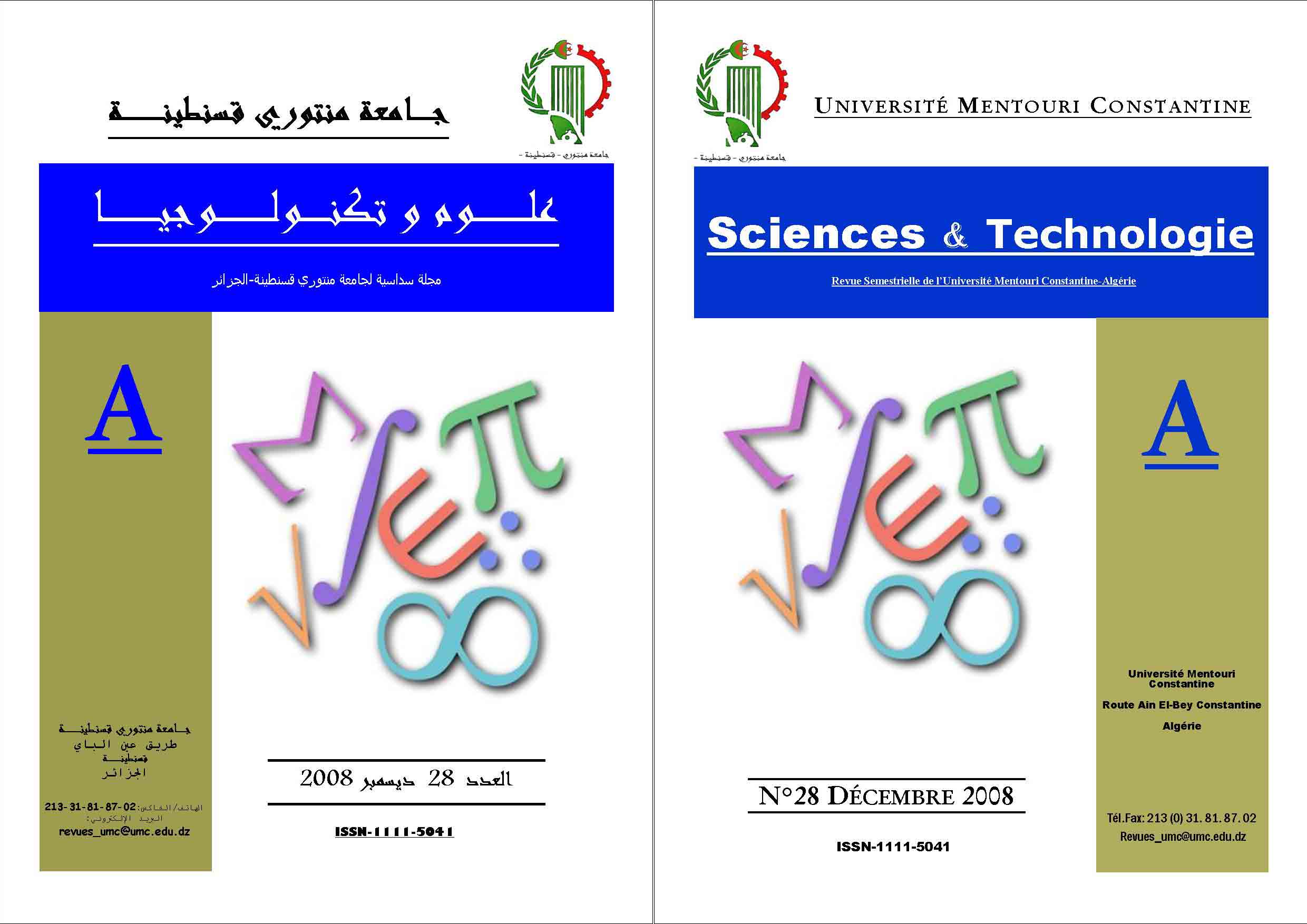 Publication and Scientific Animation Department. Freres Mentouri University Constantine. Ain El Bey Road, PB 325, Constantine, Algeria