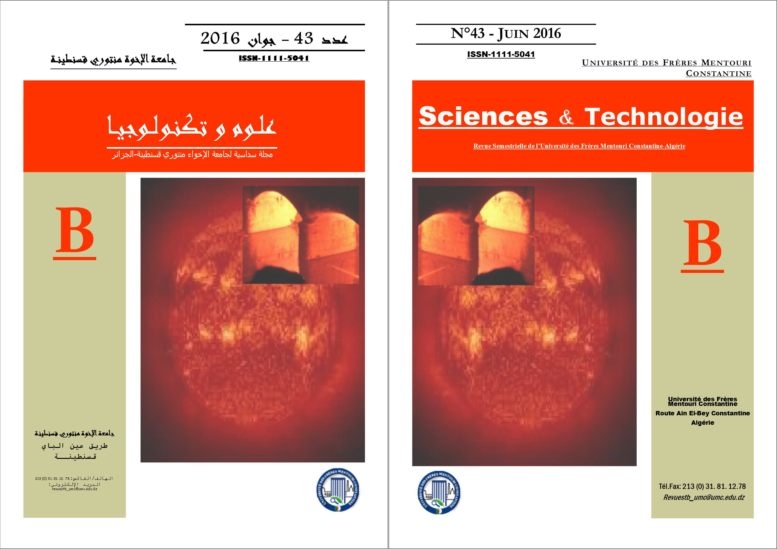 Direction de la Publication et de l'Animation Scientifique. Université des Frères Mentouri Constantine. Route Ain El Bey, BP 325, Constantine, Algérie