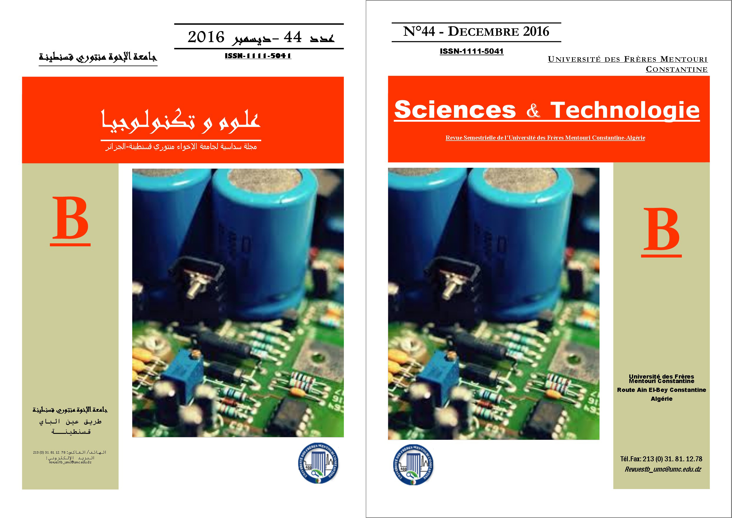 Direction de la Publication et de l'Animation Scientifique. Université des Frères Mentouri Constantine. Route Ain El Bey, BP 325, Constantine, Algérie
