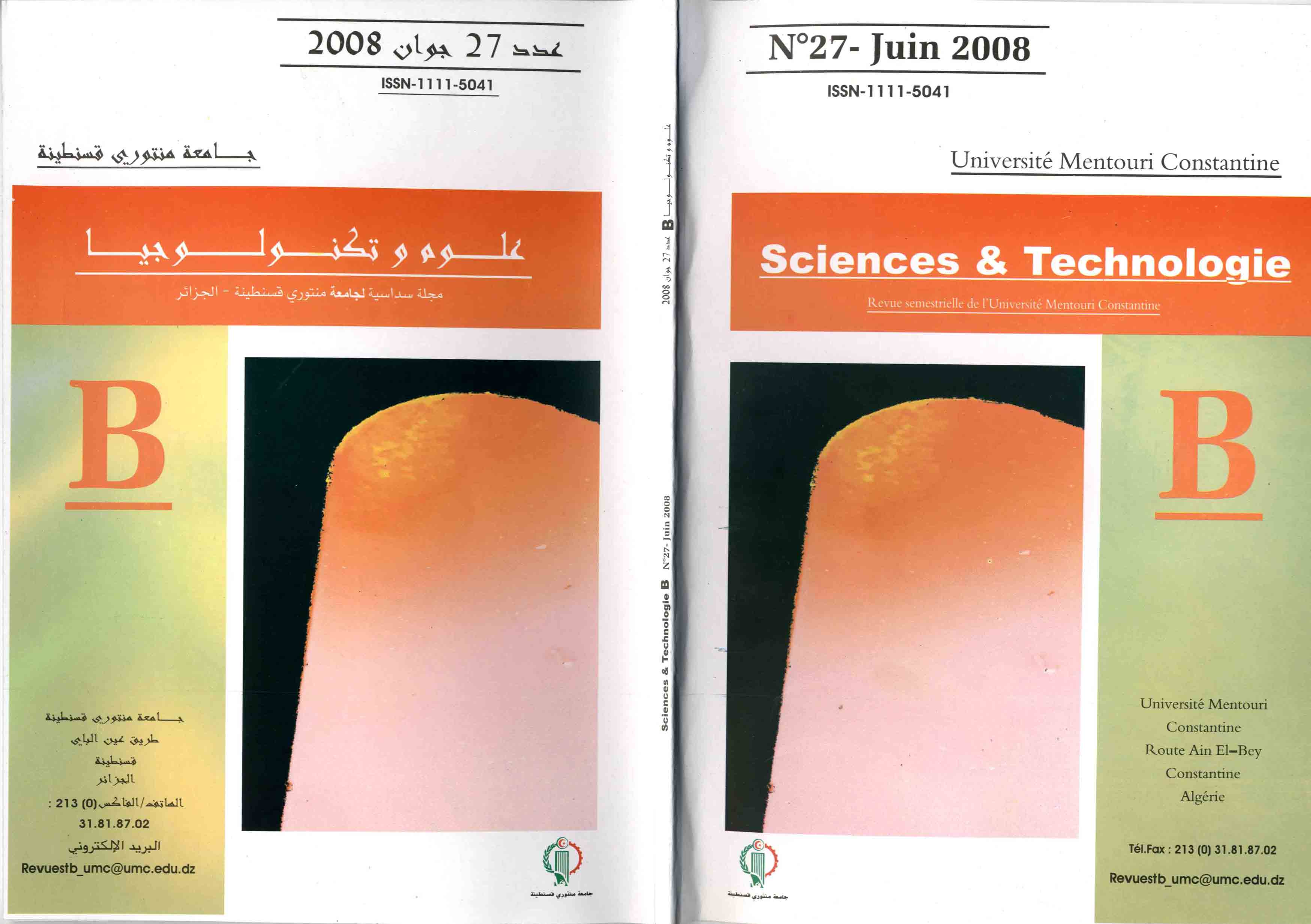 Direction de la Publication et de l'Animation Scientifique. Université des Frères Mentouri Constantine. Route Ain El Bey, BP 325, Constantine, Algérie