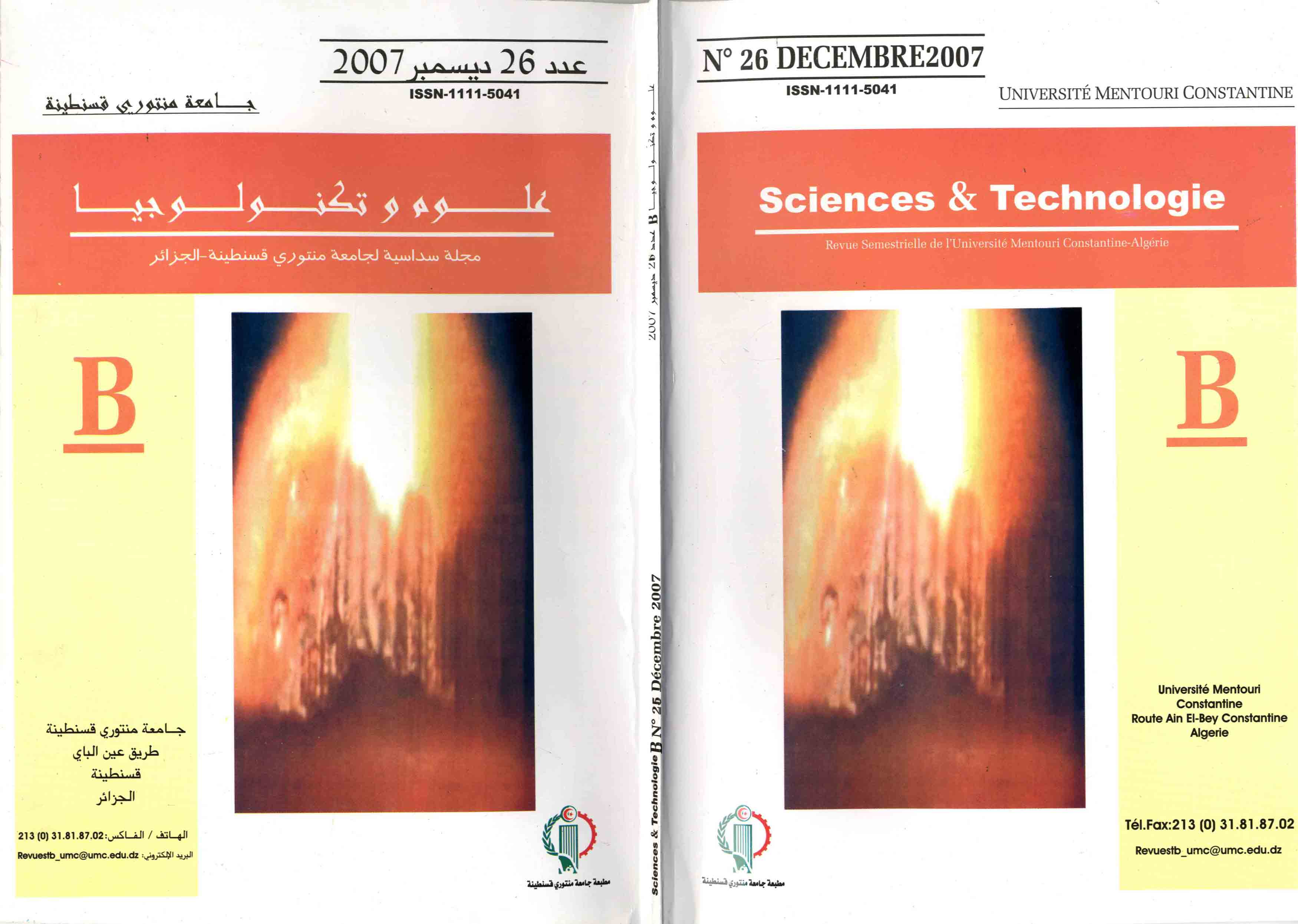 Direction de la Publication et de l'Animation Scientifique. Université des Frères Mentouri Constantine. Route Ain El Bey, BP 325, Constantine, Algérie