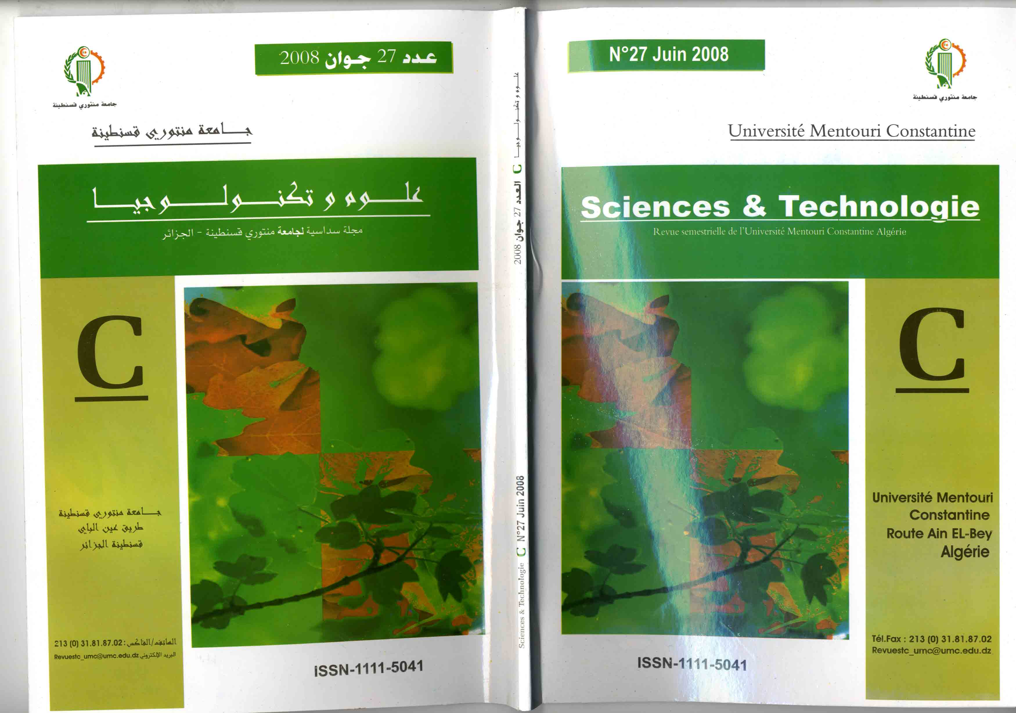 Direction de la Publication et de l'Animation Scientifique. Université des Frères Mentouri Constantine. Route Ain El Bey, BP 325, Constantine, Algérie