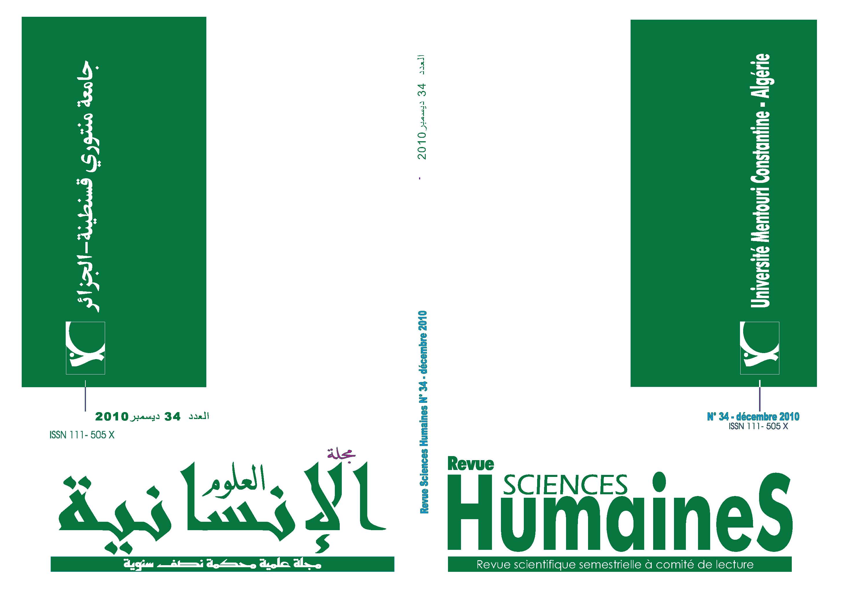 Publication and Scientific Animation Department. Freres Mentouri University Constantine. Ain El Bey Road, PB 325, Constantine, Algeria