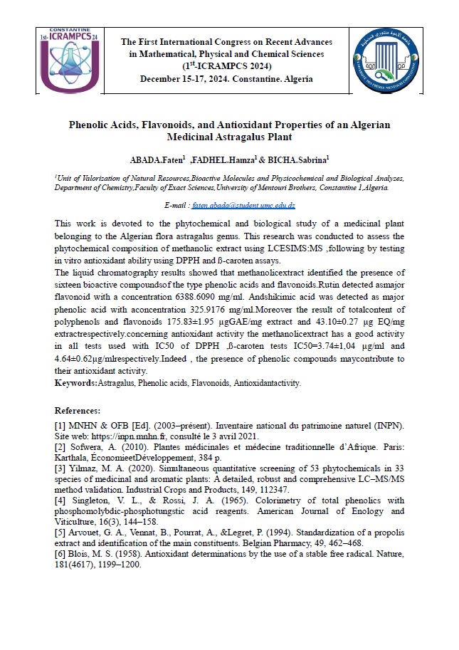 The First International Congress on Recent Advances in Mathematical, Physical, and Chemical Sciences is a prestigious global gathering that brings together researchers, scientists, academicians, and industry professionals. The Congress serves as a platform to showcase and discuss the latest advancements, discoveries, and innovations in mathematical, physical, and chemical sciences. Participants exchange knowledge, ideas, and insights, while eminent scientists deliver plenary talks and keynote lectures. These sessions inspire new research directions and offer valuable perspectives. Overall, the Congress fosters scientific collaboration, knowledge dissemination, and contributes to societal progress through advancements in these fields.